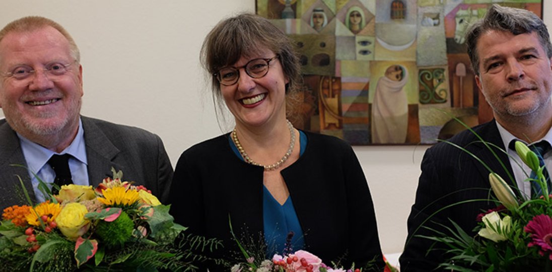 Direktor Roland Herpich und Abteilungsleiter Dr. Christof Theilemann lobten die menschliche und professionelle Zusammenarbeit mit den Scheidenden. Mit dabei waren unter anderem Generalsuperintendentin Heilgard Asmus und der frühere Ratsvorsitzende Nikolaus Schneider. Asmus ist Mitglied im Missionsrat und Schneider Mitglied im Beirat Migration/Integration des Berliner Missionswerks. Für die musikalische Umrahmung sorgte das Ehepaar Iskraut mit viel Aplaus: Mit Bachs Suite Nr. 3 C-Dur für Violoncello solo und Massenets Méditation aus der Oper „Thaïs“.