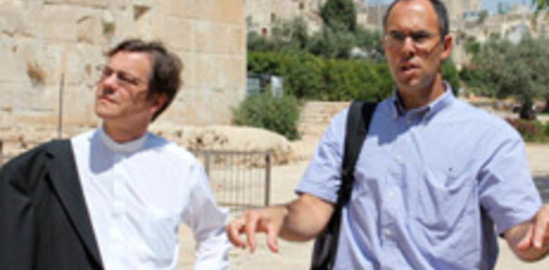 Über die Lage in Hebron informierten sich Roland Herpich, Direktor der Berliner Missionswerkes, sowie Bischof Dr. Markus Dröge, der zugleich Aufsichtsratsvorsitzender des Evangelischen Entwicklungsdienstes (EED) ist, während der Antrittsreise des Bischofs nach Israel und in die palästinensischen Gebiete. Die Reise war von Dr. Almut Nothnagle, Geschäftsführerin des Jerusalemsvereins und Nahostreferentin des Berliner Missionswerks, vorbereitet worden.