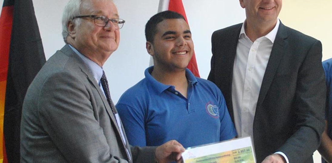 Als Dank des Landes Brandenburg für die "hervorragende Arbeit, die in Talitha Kumi geleistet wird", übergab Ministerpräsident Woidke einen symbolischen Scheck über annähernd 2.900 Euro zugunsten des Projekts "Bücher & Lernen".