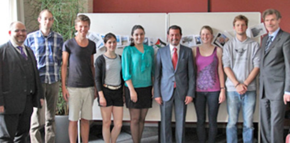 Für die Beantwortung einiger Fragen kam ein besonderer Gast zu dem Seminar hinzu: Salah Abdel Shafi, Botschafter Palästinas in Berlin. Er nahm sich die Zeit, mit der kleinen Gruppe über das deutsch-palästinensische Verhältnis zu sprechen, aber auch allgemein über das Leben in Palästina zu informieren. Abdel Shafi warb darum, den Palästinensern zu helfen, indem man den Staat Israel wie jeden anderen Staat behandle. Er lobte das deutsche Engagement in den Autonomiegebieten und stellte die Rolle der Christen in der palästinensischen Gesellschaft dar. Der Botschafter versicherte: "Sie werden es nicht bereuen, nach Palästina zu gehen. Es lohnt sich. Wir freuen uns auf Sie!".